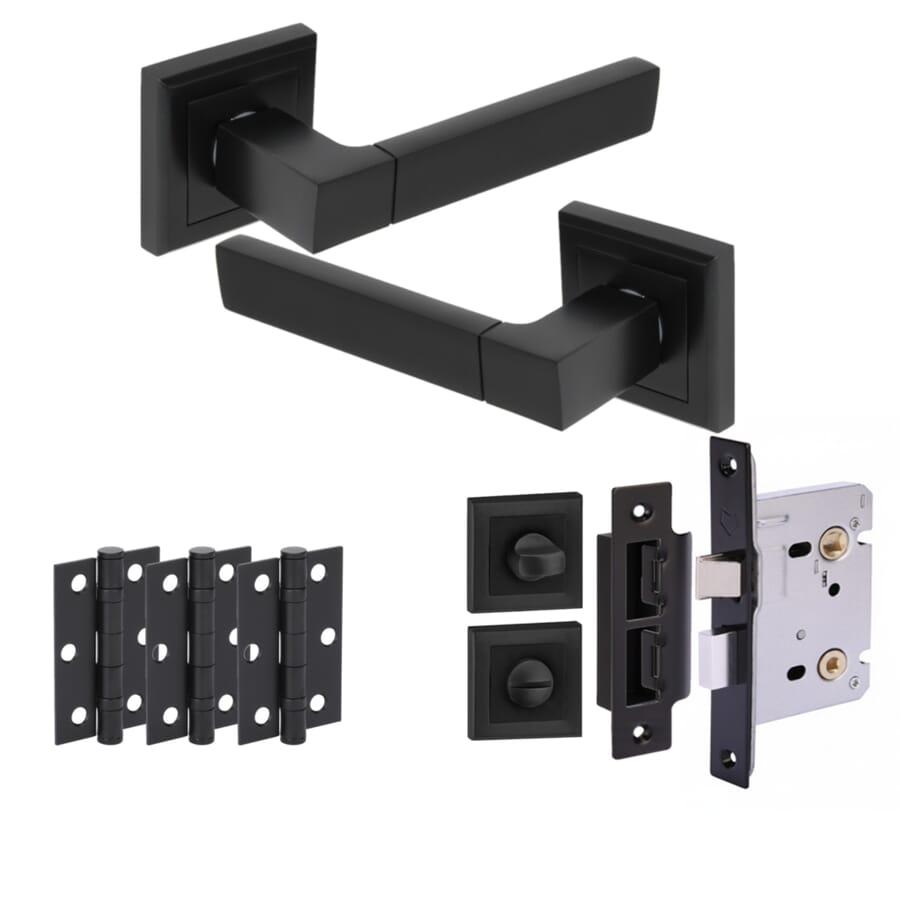 Choose the standard latch pack for everyday internal doors, complete with two matching levers, a quality latch, and three 3-inch hinges for secure fitting. For bathrooms or rooms requiring privacy, the bathroom pack replaces the latch with a privacy lock and matching thumbturns, ensuring both style and functionality. Where fire safety compliance is required, the FD30 fire door pack includes two levers, a CE-rated fire door latch, and three Grade 13 4-inch hinges engineered specifically for FD30-rated doors.