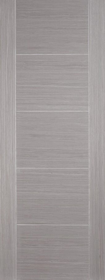 LPD Doors’s Light Grey Vancouver Fire door is enhanced by the grainy finish of the stain applied to these doors. These Grey Fire doors have 5 panels or horizontally veneered, grey stained panels, with 2 vertically veneered grey stained stiles, divided by the characteristic V Groove offered in the Vancouver style door range. These Light Grey Fire doors are designed and manufactured to meet the latest in UK Building Regulations with their FD30 compliance, meaning that they will protect from the spread of fire between rooms for a minimum 30 minutes.