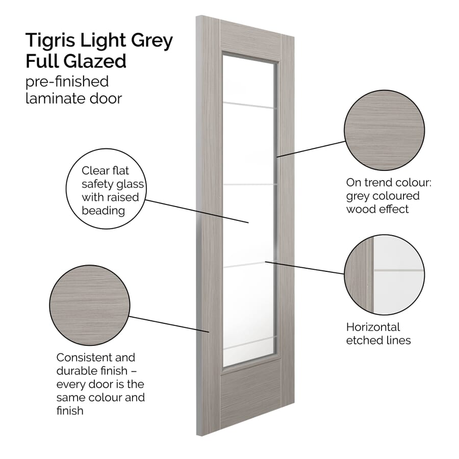 Ideal for modern homes and spaces seeking a blend of minimalist style and practical functionality, the Tigris Lava Full Glazed Internal Doors offer an exquisite choice for those looking to upgrade their interior doors with a touch of contemporary elegance.