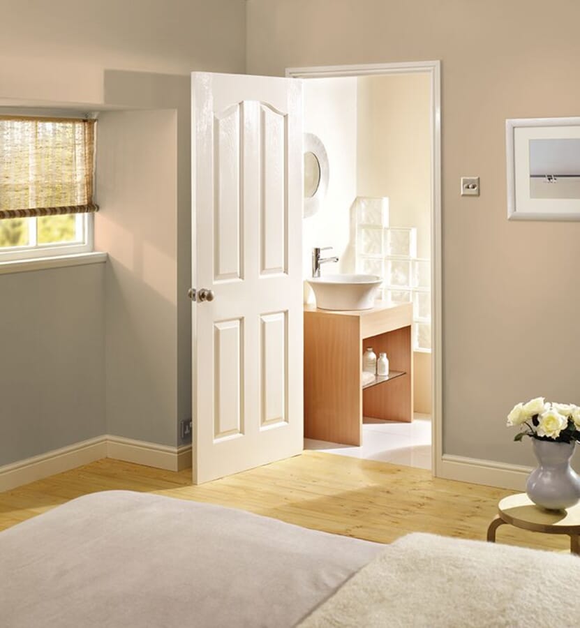 Crafted from a white composite, this Mayfair door design features four raised shaped panels with an appealing curved top edge. Available in 35mm imperial & 40mm thick metric sizes.